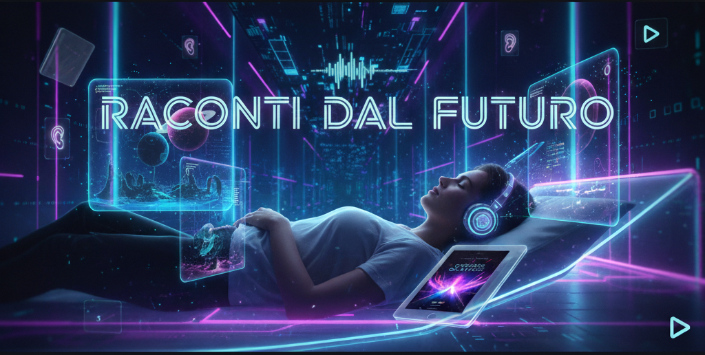 Noi siamo "Racconti dal Futuro" e abbiamo sintonizzato le nostre frequenze per intercettare le storie che verranno. Tra i nostri audiolibri troverai narrazioni di utopie conquistate a caro prezzo, di intelligenze artificiali che ci offrono la salvezza e la prigionia, di decisioni che hanno plasmato il destino di intere civiltà.